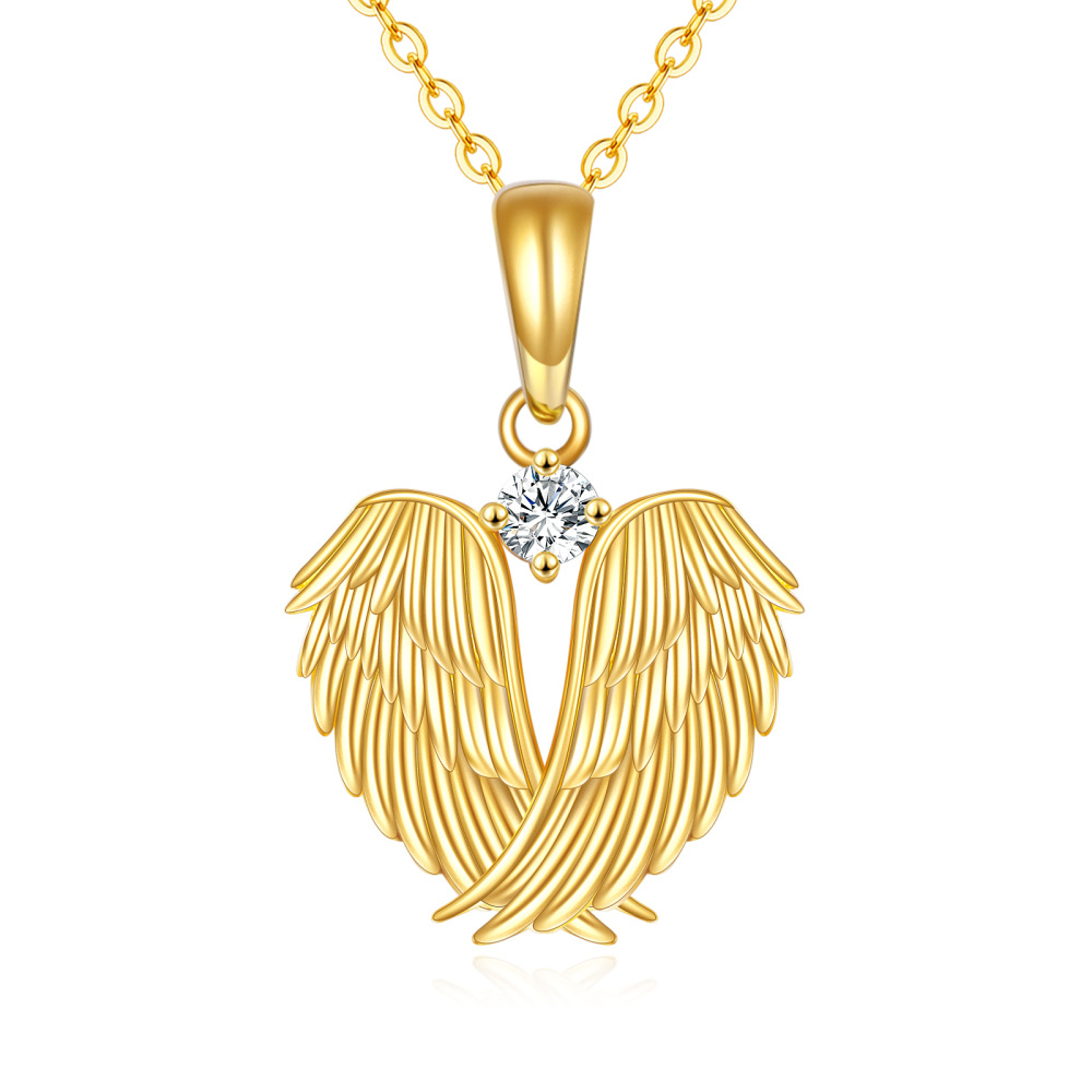 Discover our beautiful 10K Gold Pendant Necklace, featuring a unique angel wing and heart design embellished with sparkling Cubic Zirconia, perfect for women who appreciate elegance.