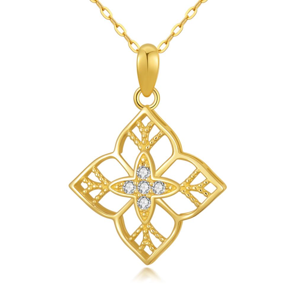 Explore our elegant 10K Gold Pendant Necklace featuring a round design with brilliant Cubic Zirconia in a charming four-leaf clover motif that enhances any outfit.