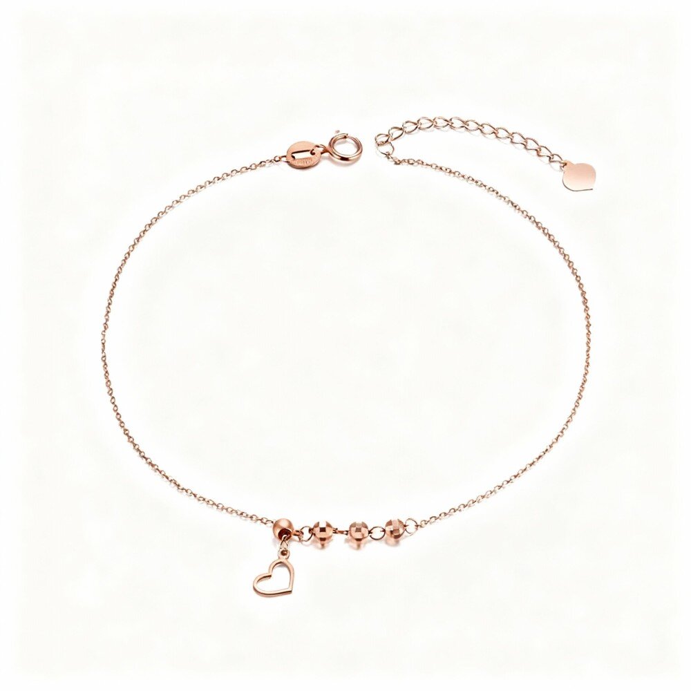 Elevate your style with our exquisite 10K Rose Gold Single Layer Charm Anklet, designed for the modern woman who appreciates elegance and simplicity. This stunning piece features charming bead accents and a heart motif, embodying a subtle yet sophisticated aesthetic that complements any outfit, from casual to dressy.
