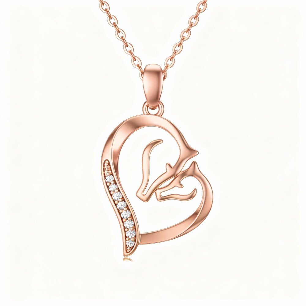 Explore our exquisite 10K Rose Gold Pendant Necklace featuring a heart and horse design, perfect for contemporary women who appreciate elegance and charm.