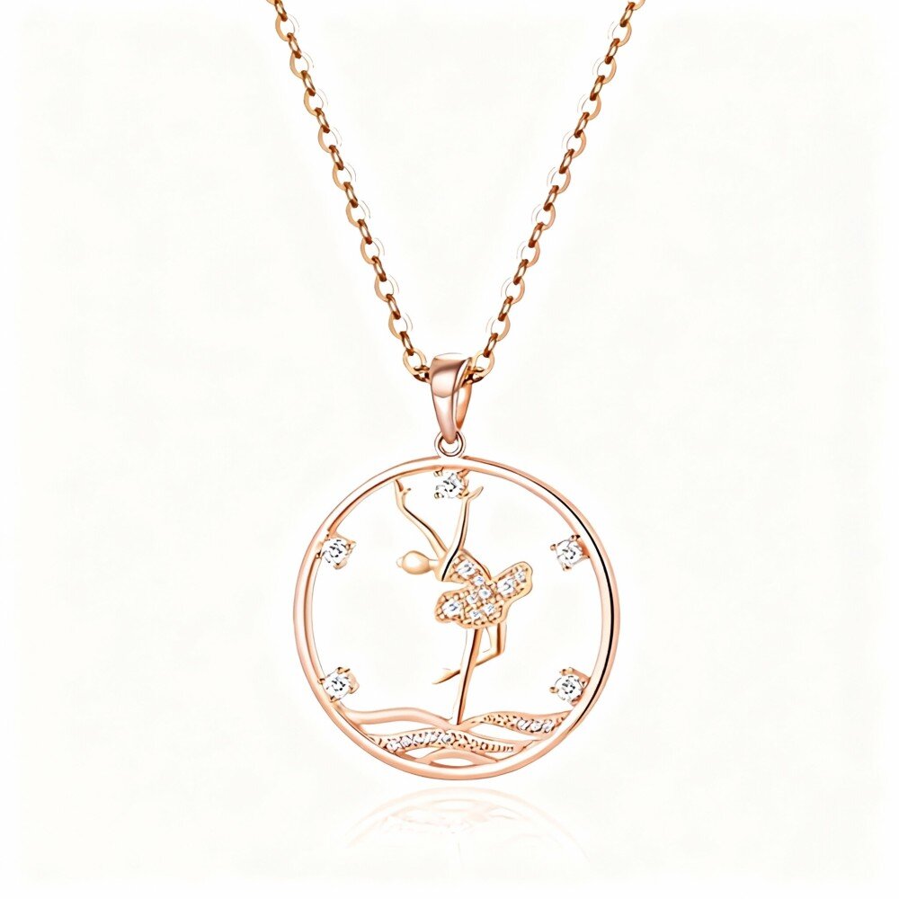 Elevate your elegance with our Pendant Necklace, meticulously crafted from 10K Rose Gold and featuring a dazzling Moissanite centerpiece designed as a ballet dancer, symbolizing grace and sophistication. Ideal for women who appreciate both timeless beauty and modern flair, this Rose Gold necklace adds a touch of luxury to any attire.