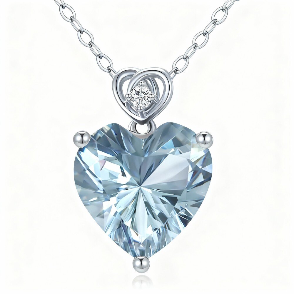 Crafted with precision, our 10K White Gold Aquamarine Heart Pendant Necklace is more than just an accessory—it's a statement piece that reflects your style and sophistication. The centerpiece, a mesmerizing Aquamarine, is elegantly complemented by a halo of sparkling Moissanite stones, creating a dazzling effect that captures attention. The romantic heart shape symbolizes deep affection, making it a perfect gift for loved ones or a treasured addition to your own jewelry collection. Whether you’re dressing up for a formal event or looking to enhance a casual outfit, this necklace is versatile enough to suit any occasion. Its calming blue tones evoke tranquility and peace, while the luxurious 10K White Gold setting ensures durability and longevity. Elevate your jewelry collection with this exquisite piece that embodies elegance, charm, and heartfelt sentiment.
