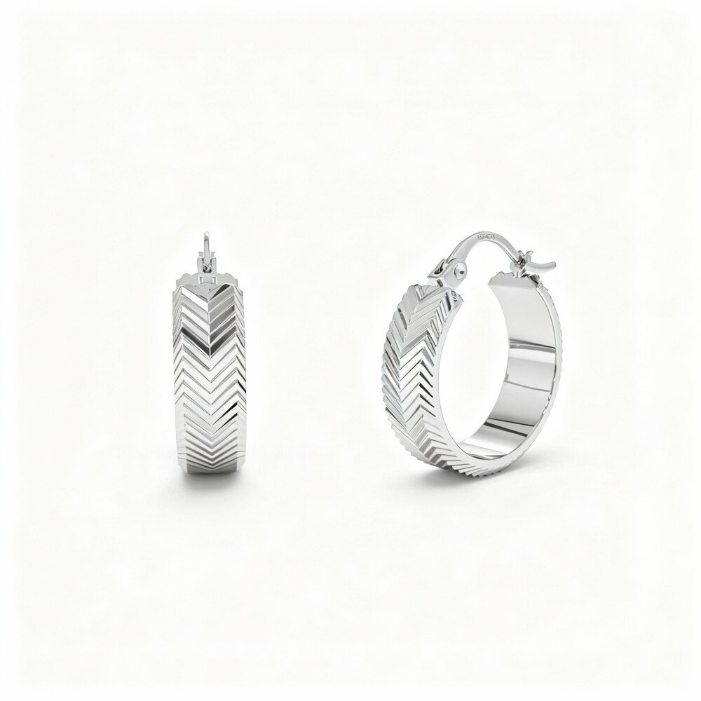 Elevate your accessory collection with our exquisite 10K White Gold Diamond Cut Textured Hoop Earrings, perfect for those who love elegance and style.