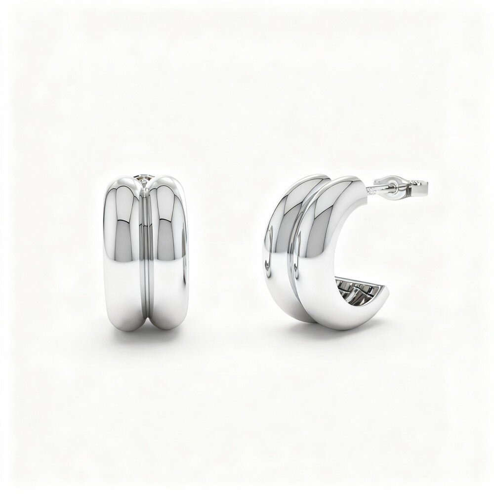 These exquisite 10K White Gold Twin C Hoops feature a refined inner diameter of 10 MM and a chic width of 7.65 MM, making them an essential piece for any jewelry lover. Designed for versatility, they embody a perfect blend of sophistication and modern style. Crafted from high-quality 10K White Gold, these hoop earrings showcase a classic circular design, exuding a luxurious yet understated charm. The absence of stones allows these earrings to maintain a sleek silhouette, making them suitable for both casual outings and formal events. Their lightweight construction ensures all-day comfort, while the polished finish adds a touch of brilliance, making these earrings the go-to accessory for fashionable women everywhere. Whether you're dressing up for a night out or keeping it casual, these hoops are the perfect addition to your jewelry collection.