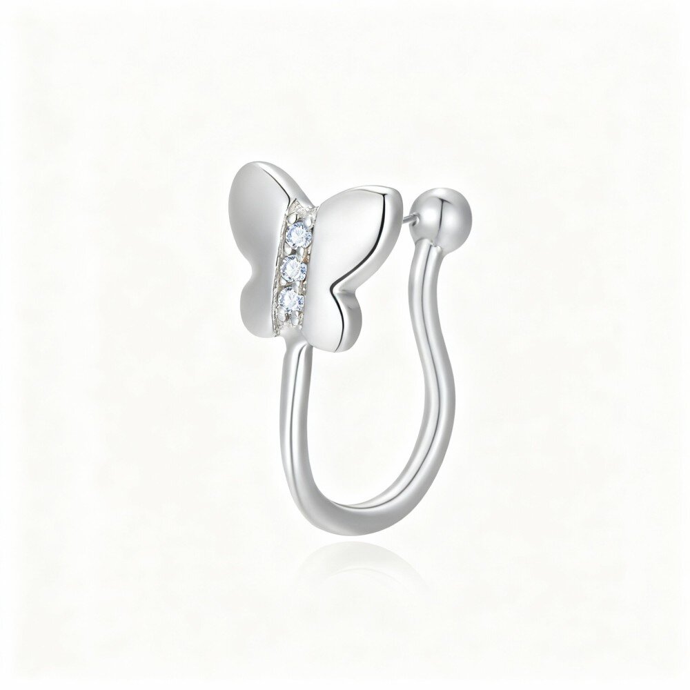 Discover the beauty of our stunning 10K White Gold butterfly nose ring adorned with brilliant Cubic zirconia, perfect for women who value elegance and charm.