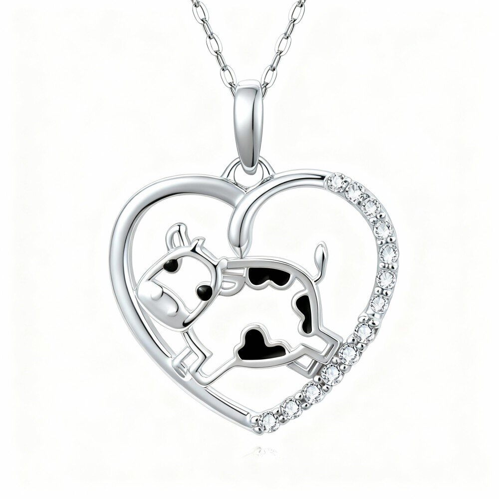 This stunning 10K White Gold pendant necklace is a perfect addition to any woman’s jewelry collection. With its whimsical cow and heart motif, it adds a playful yet elegant touch to any outfit. The shimmering Cubic Zirconia stones embedded in the design catch the light beautifully, making it a standout piece for both everyday wear and special occasions. Crafted with high-quality materials, this necklace is not only a unique expression of style but also a symbol of affection and joy. Ideal for those who appreciate distinctive and meaningful jewelry, this piece offers durability along with a fashionable flair. Whether you're dressing up for a formal event or adding a special touch to your casual look, this necklace is sure to be a conversation starter and an expression of your unique personality.