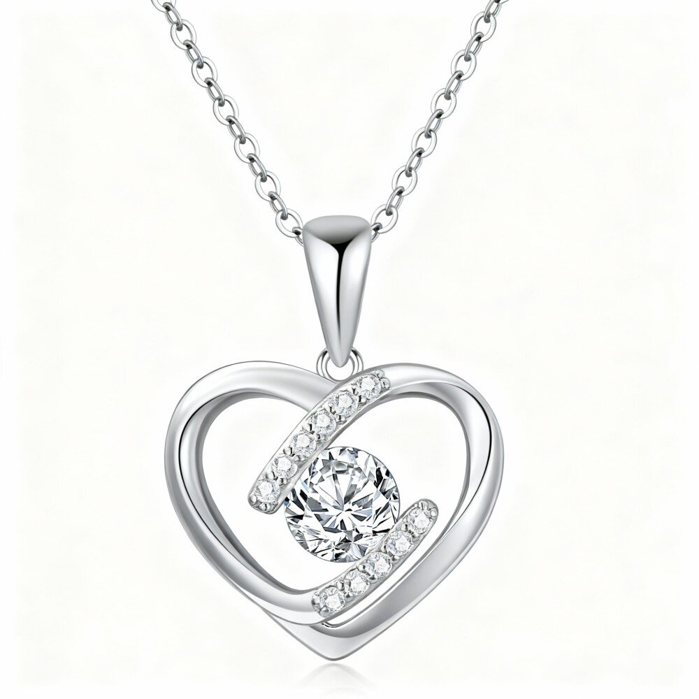 Elevate your style with our exquisite 10K White Gold Pendant Necklace featuring a heart-shaped design adorned with brilliant Cubic Zirconia, perfect for modern women.
