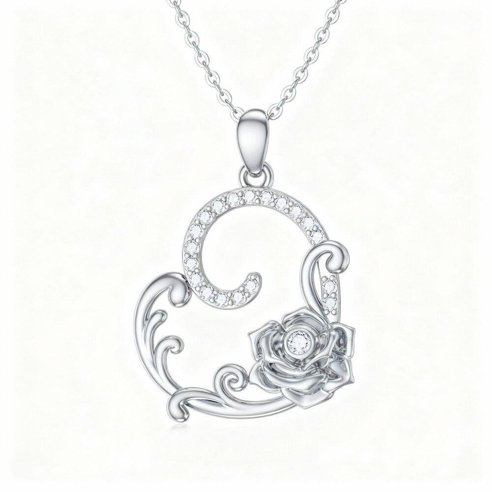 Explore our stunning 10K White Gold Pendant Necklace featuring a beautiful rose design embellished with shimmering Cubic Zirconia, perfect for enhancing your elegance on any occasion.