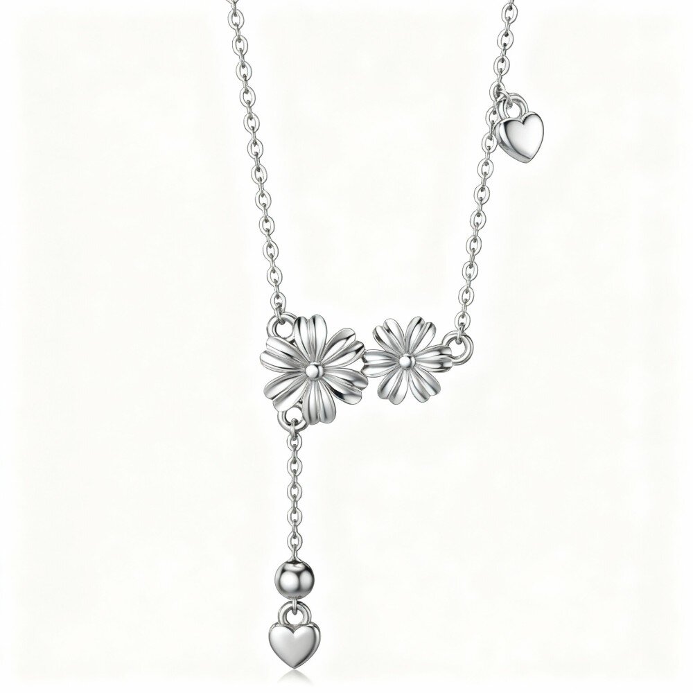 Explore our stunning 10K White Gold Pendant Necklace featuring a unique Daisy Heart design, perfect for women who value elegance and simplicity.