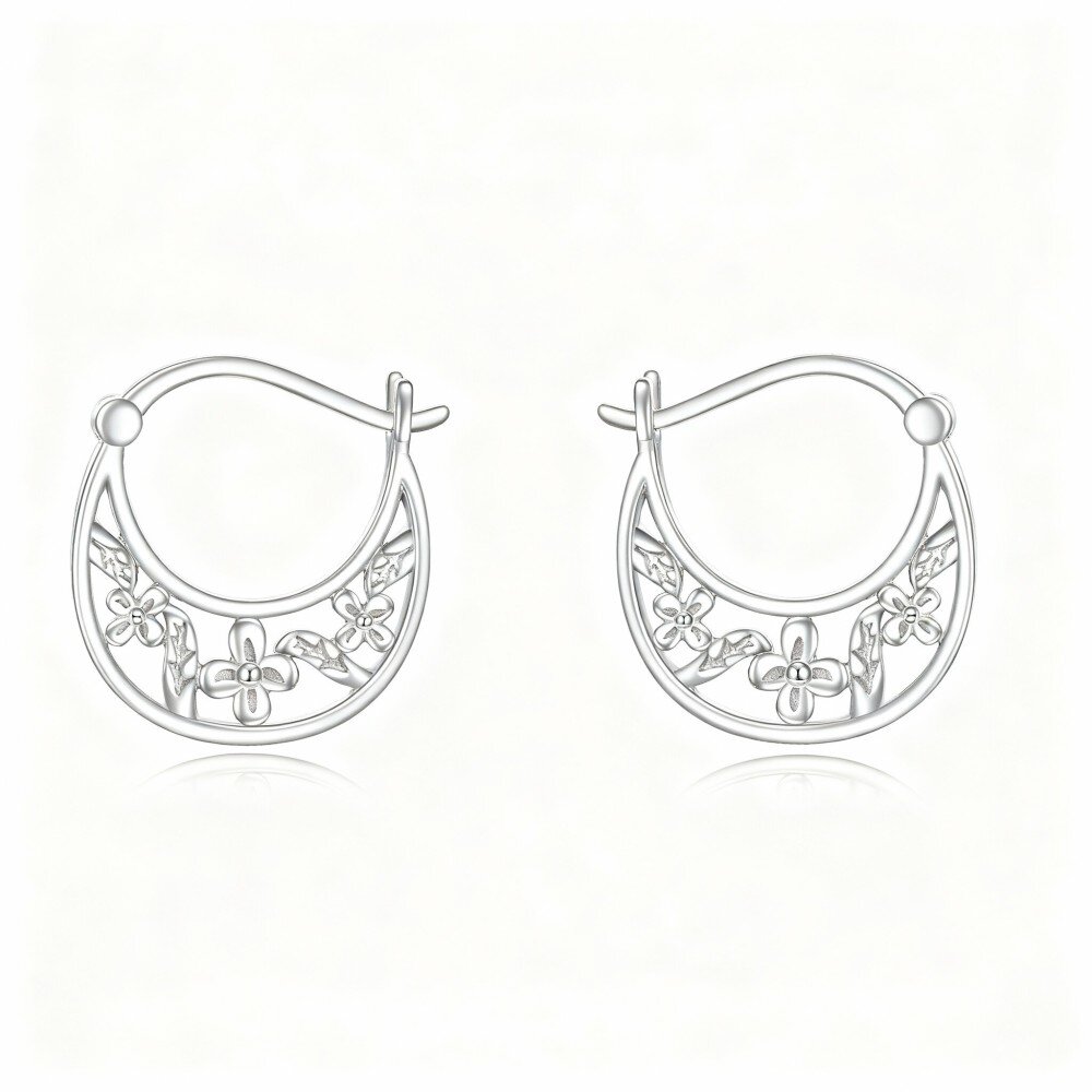 Elevate your style with our exquisite 10K White Gold Hoop Earrings, designed with a charming daisy motif that adds a touch of feminine elegance. These stone-free treasures are perfect for any occasion, effortlessly enhancing your jewelry collection while offering a timeless appeal.