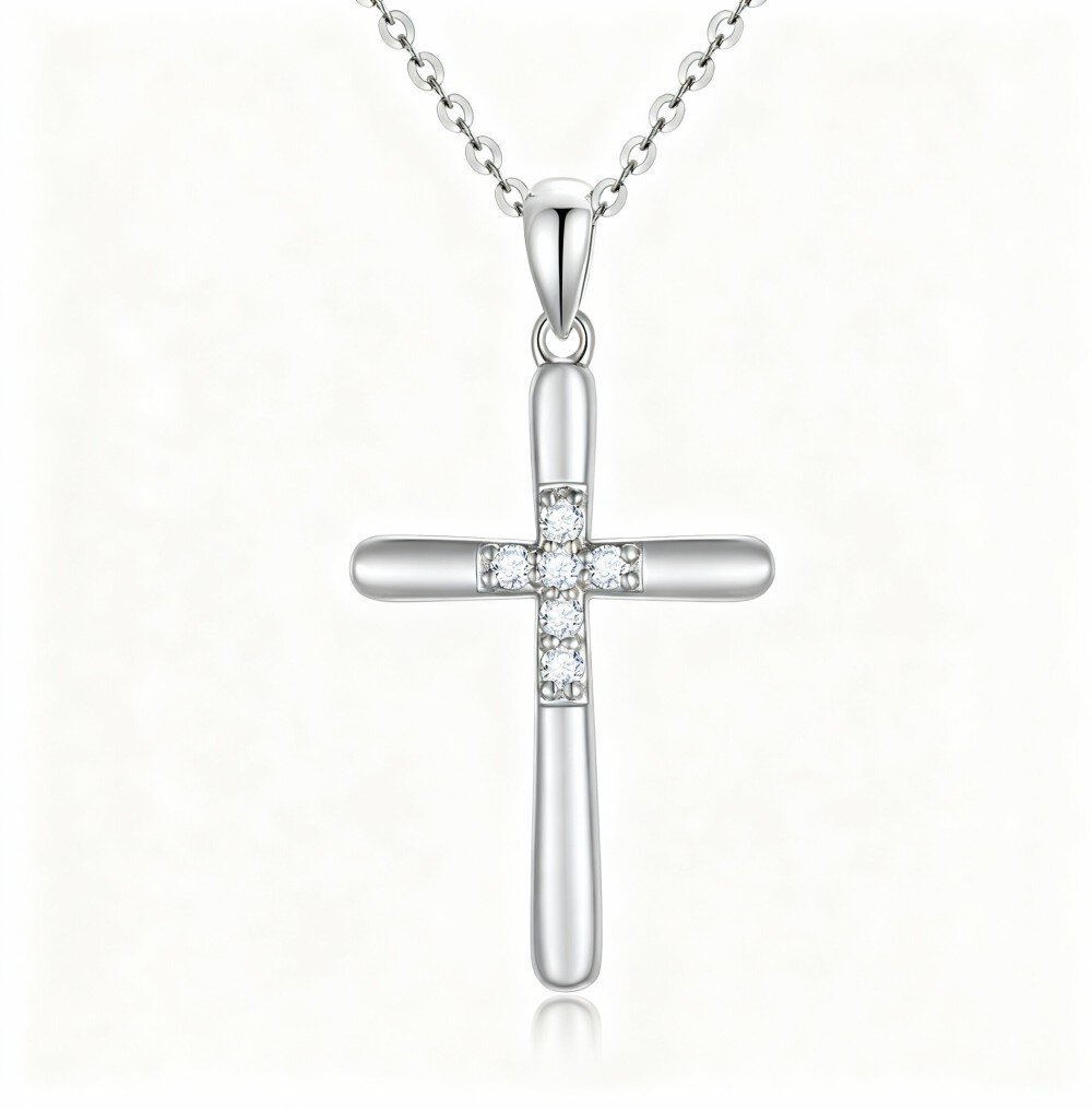 Crafted from high-quality 10K White Gold, this pendant necklace is designed to last while maintaining its radiant shine. The delicate cross pendant symbolizes strength and spirituality, making it a meaningful gift for yourself or a loved one. Set with sparkling diamonds, it adds a touch of sophistication to any outfit, whether it's for casual wear or a special occasion. Lightweight and comfortable, this versatile piece is ideal for daily wear or layered with other necklaces, making it a must-have for any modern woman.