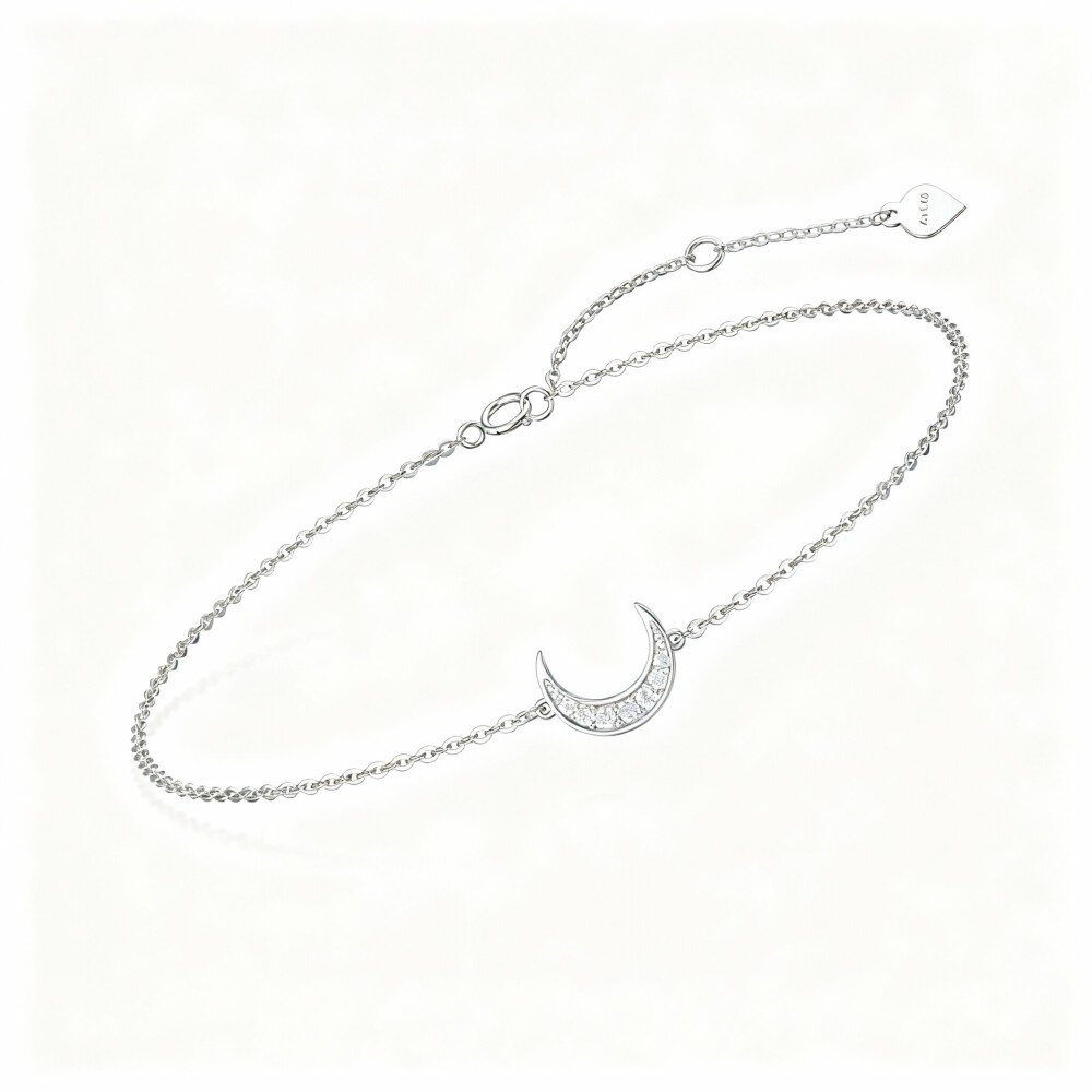Experience unmatched sophistication with our 10K White Gold Charm Bracelet featuring a stunning diamond moon charm.