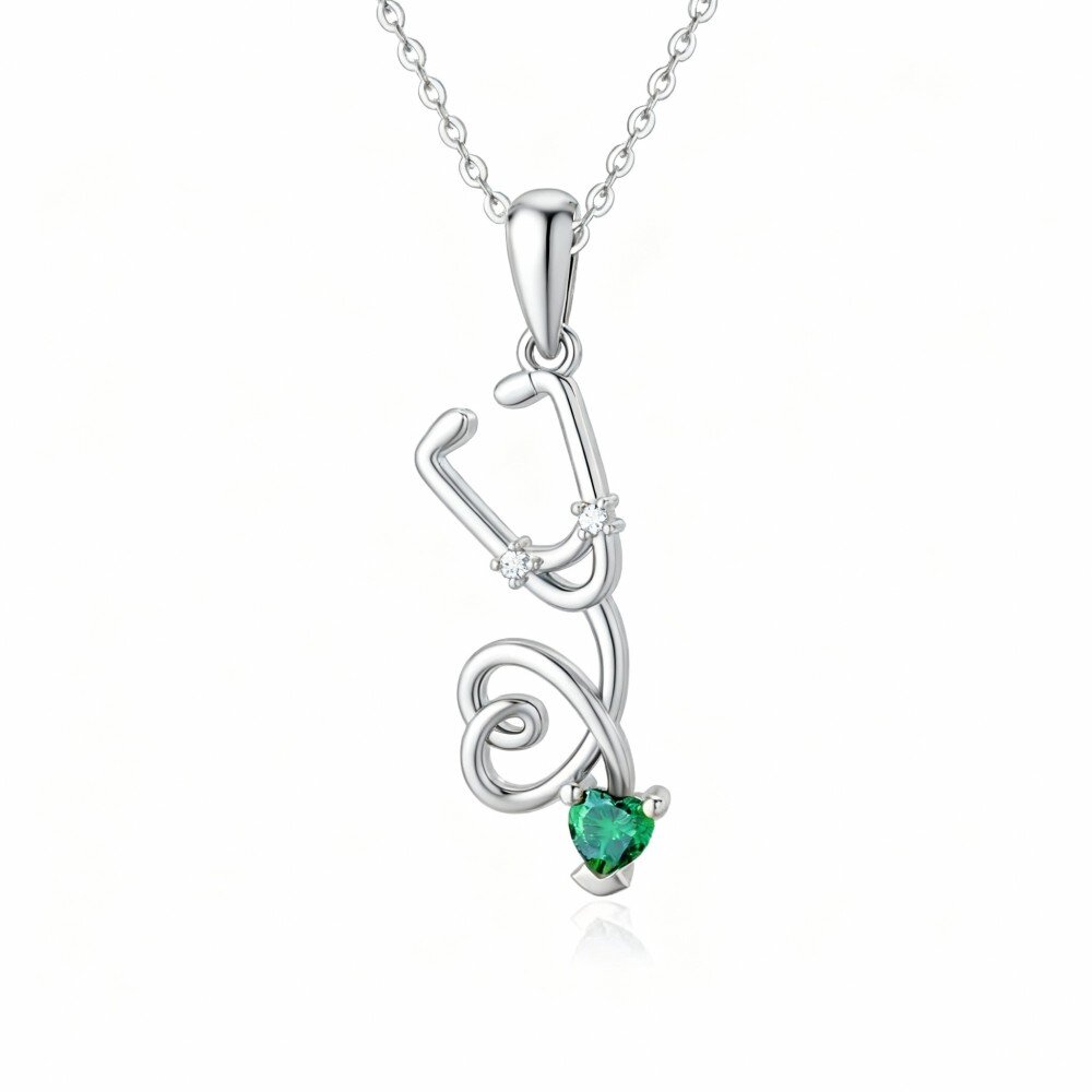 This beautiful necklace features a unique heart-shaped stethoscope pendant made from high-quality 10K White Gold, adorned with a dazzling Green Cubic Zirconia centerpiece. The heart symbolizes love and compassion, making it an exceptional gift for healthcare professionals or anyone who values elegance in their accessories. This piece perfectly blends luxury and symbolism, allowing you to express your affection in a stylish manner. Whether worn daily or on special occasions, this necklace adds a touch of sophistication to any outfit. Celebrate the bond between health and emotion with this stunning jewelry piece that showcases not just fashion but also heartfelt meaning.