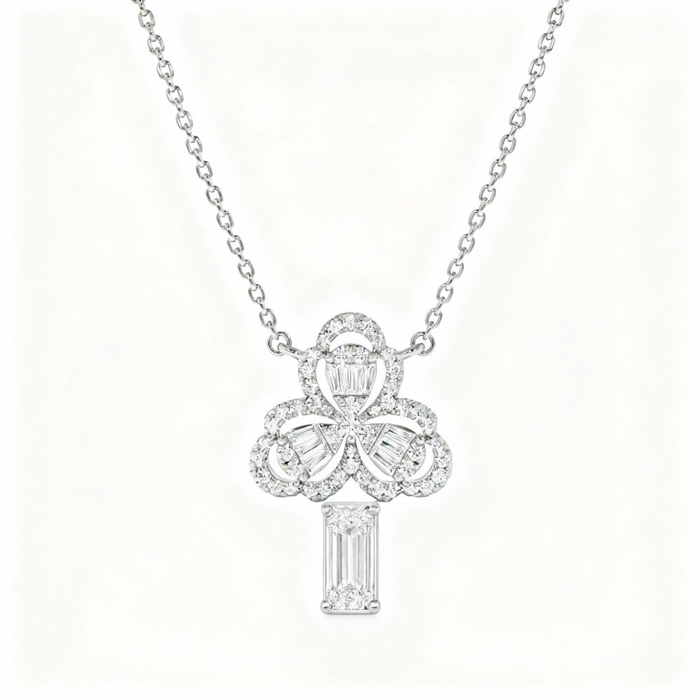 Discover elegance with our stunning 10K White Gold Clover Pendant Necklace, featuring exquisite diamonds that shine with exceptional clarity and beauty.