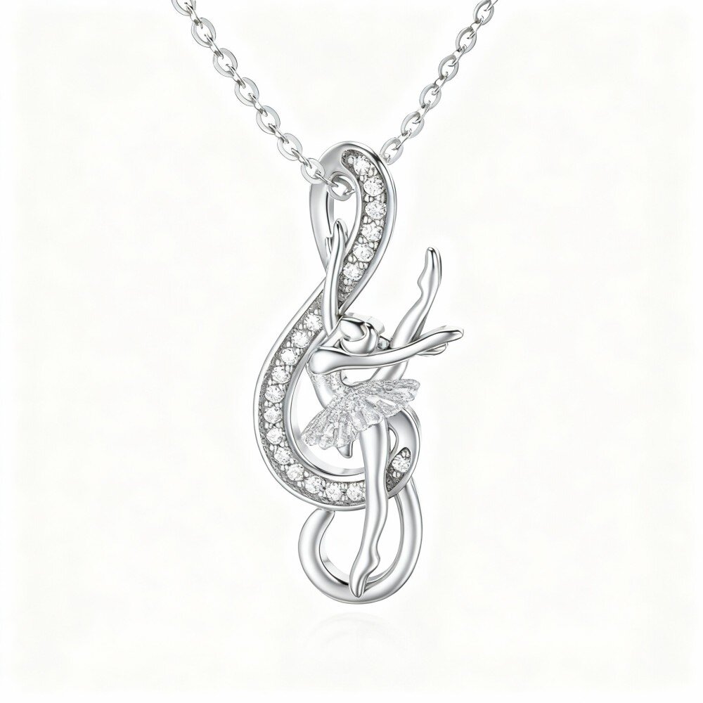 Crafted with precision, this exquisite 10K White Gold pendant showcases a beautifully detailed ballet dancer, symbolizing grace and artistry, elegantly intertwined with an infinity symbol that represents the eternal nature of beauty. The centerpiece of this remarkable piece is the radiant Moissanite gemstone, which shines with exceptional brilliance and durability, making it a perfect choice for any occasion. Ideal for the modern woman who appreciates both style and significance, this necklace is more than just an accessory; it is a statement of elegance and sophistication. Whether you're dressing up for a special event or adding a touch of glamour to your everyday attire, this pendant necklace is designed to elevate your look and tell your unique story.