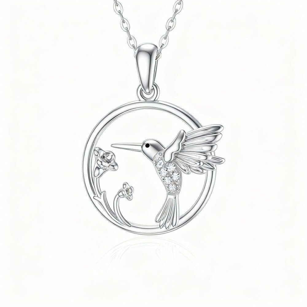 Explore our stunning 10K White Gold Pendant Necklace featuring a beautifully crafted Moissanite hummingbird, perfect for adding a touch of elegance to any jewelry collection.