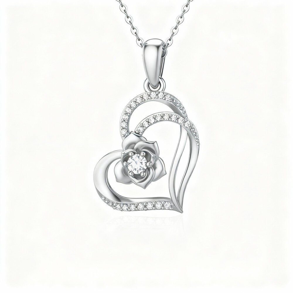 Discover our stunning 10K White Gold Pendant Necklace featuring a brilliant Moissanite gem, elegantly designed in a timeless rose motif, perfect for any woman's fashion statement.