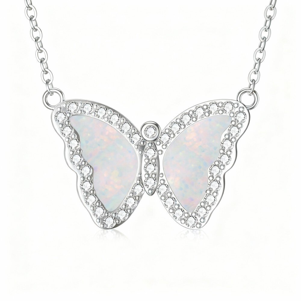 Discover the elegance of our unique 10K White Gold Butterfly Pendant Necklace, adorned with a striking opal centerpiece that embodies beauty and transformation.