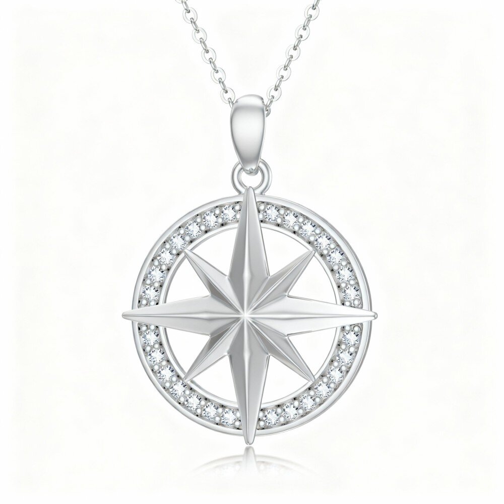 Explore our stunning 10K White Gold Compass Pendant Necklace, featuring beautiful Cubic Zirconia for a touch of elegance.