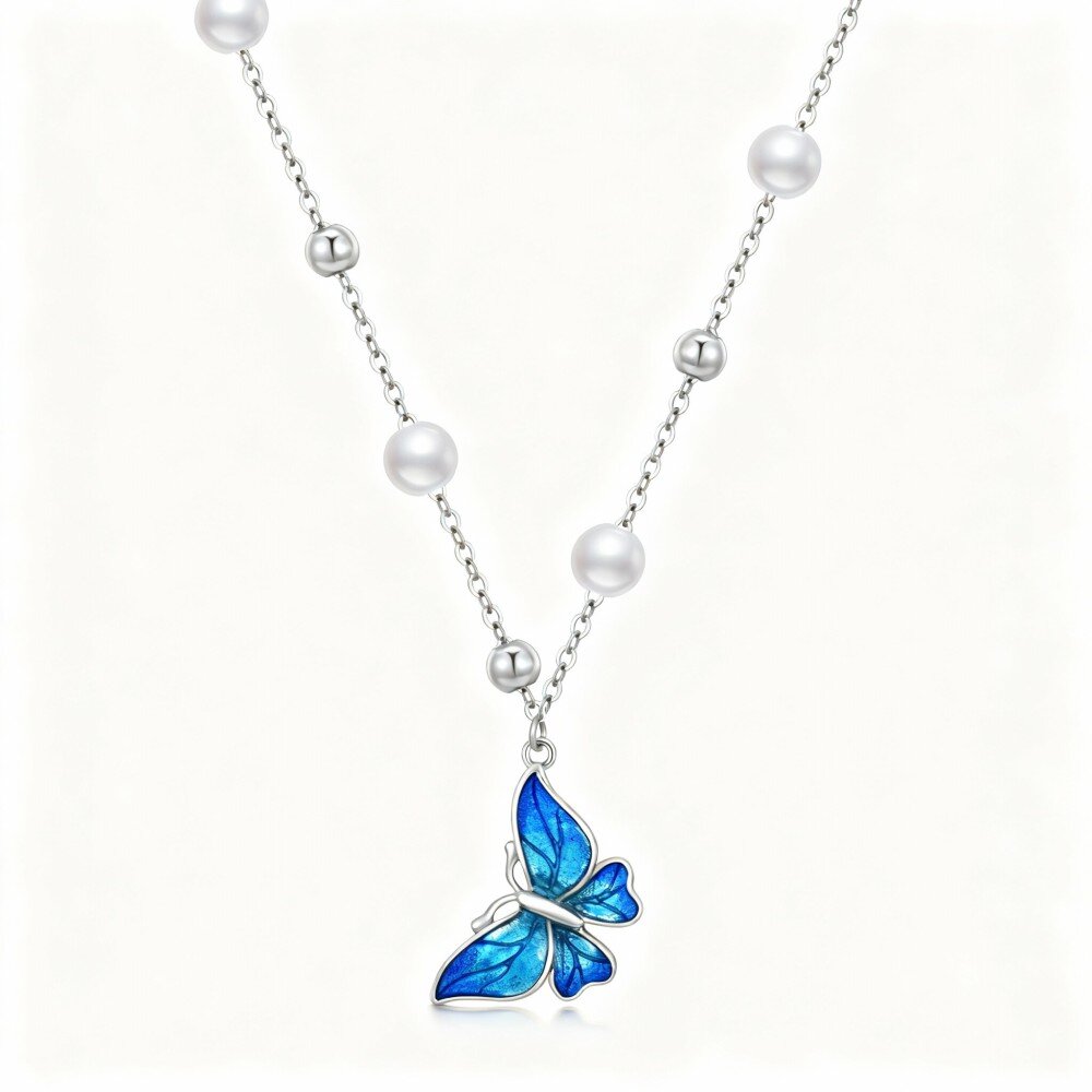 This exquisite necklace showcases a unique circular pendant, beautifully accented with a luminous Pearl and a delicately crafted butterfly design. Made from high-quality 10K White Gold, it not only represents sophistication but also embodies timeless elegance. The circular shape of the pendant enhances the pearl's natural radiance, creating a captivating focal point. The butterfly, with its intricate details, adds a charming and whimsical touch, making this necklace perfect for both casual outings and formal occasions. Its versatility ensures that it can seamlessly blend with any outfit, whether you're dressing up for a special event or adding a touch of elegance to your everyday wear. This necklace is more than just an accessory; it is a statement piece that reflects your unique style and personality. Treat yourself or gift it to someone special and let this beautiful piece elevate your jewelry collection.