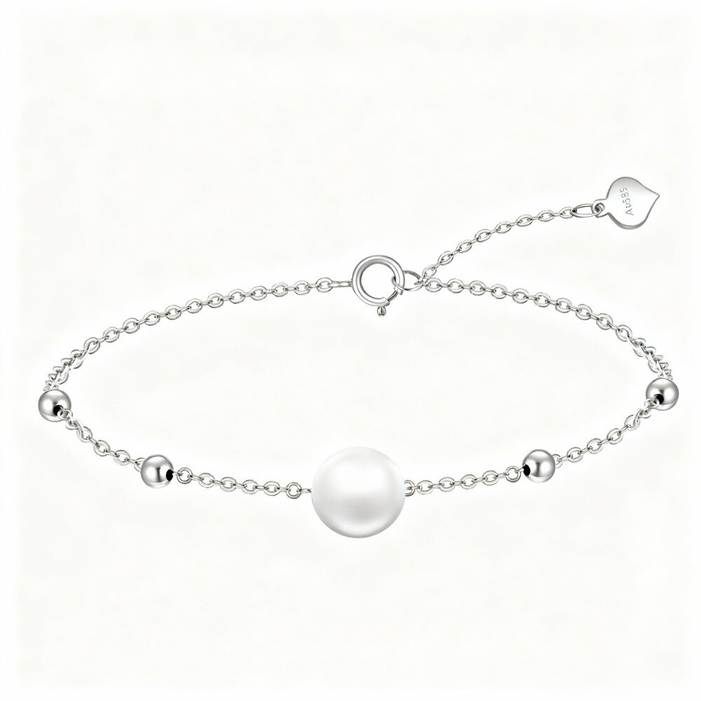Experience the true essence of elegance with our exquisite 10K White Gold Charm Bracelet, featuring a breathtaking circular design and a radiant round pearl.