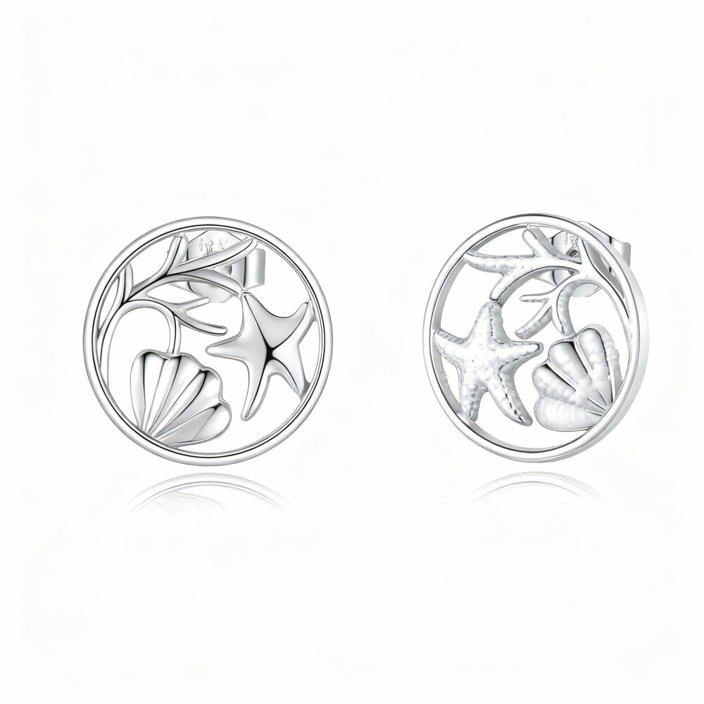 Explore our exquisite 10K White Gold Stud Earrings, featuring starfish and shell designs that showcase nature's allure and timeless elegance in every detail.