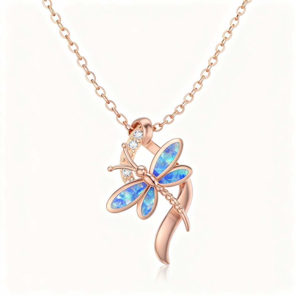 Elevate your style with our exquisite 14K Rose Gold Pendant Necklace, featuring a captivating combination of shimmering Cubic Zirconia and enchanting Opal set in a delicate dragonfly and infinity symbol design, perfect for the modern, sophisticated woman.