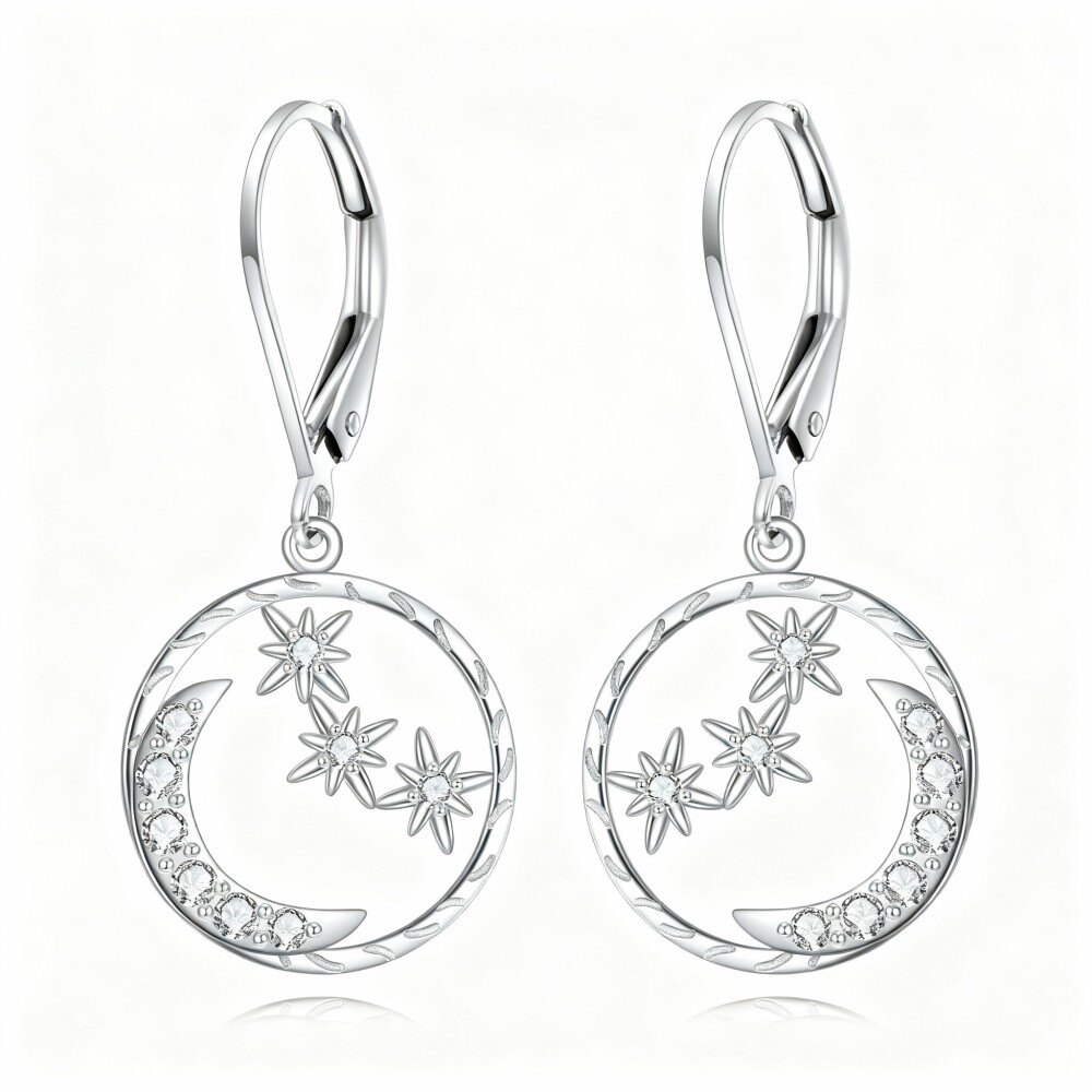 Discover our stunning 14K White Gold drop earrings that feature beautiful cubic zirconia accents in moon and star designs, perfect for enhancing your elegance.