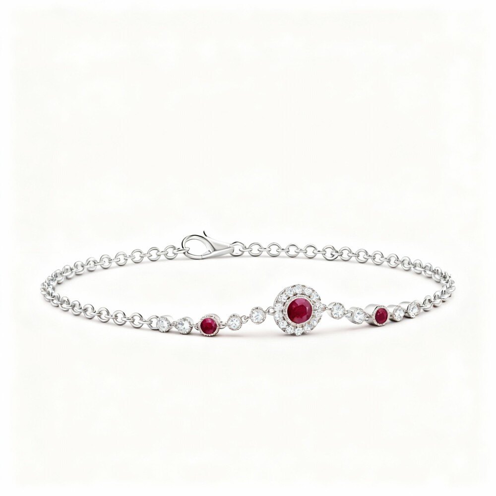 Crafted from high-quality 14K Gold, this charm bracelet showcases dazzling Moissanite stones that radiate brilliance, complemented by eye-catching ruby accents that add a pop of color. Designed with a delicate White Gold hue, the charming round motifs symbolize connection and love, making it a thoughtful gift for the remarkable women in your life, whether for a birthday, anniversary, or any heartfelt celebration. Celebrate your family’s legacy with this timeless piece that beautifully blends style and meaning.