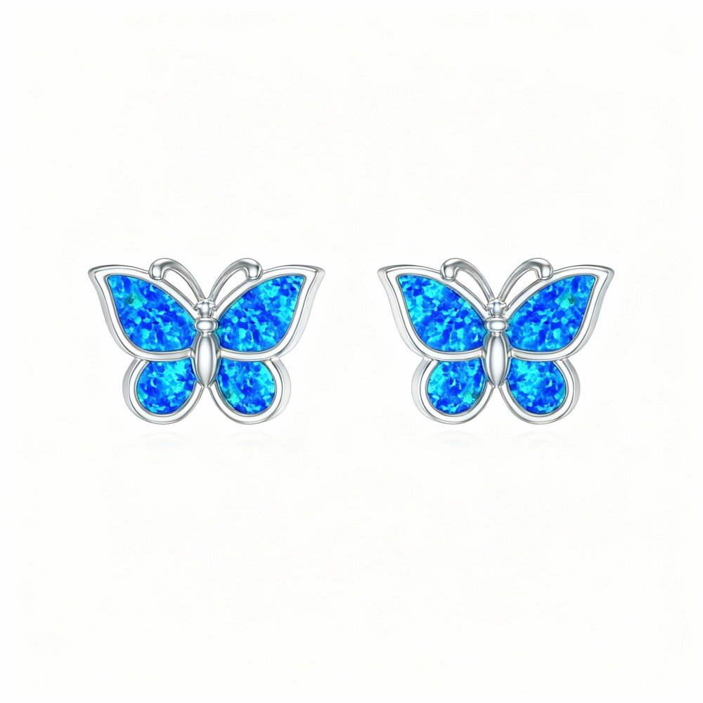 Elevate your style with our stunning 14K White Gold Blue Opal Butterfly Stud Earrings, perfectly blending timeless elegance and contemporary charm to create a unique accessory for any occasion.