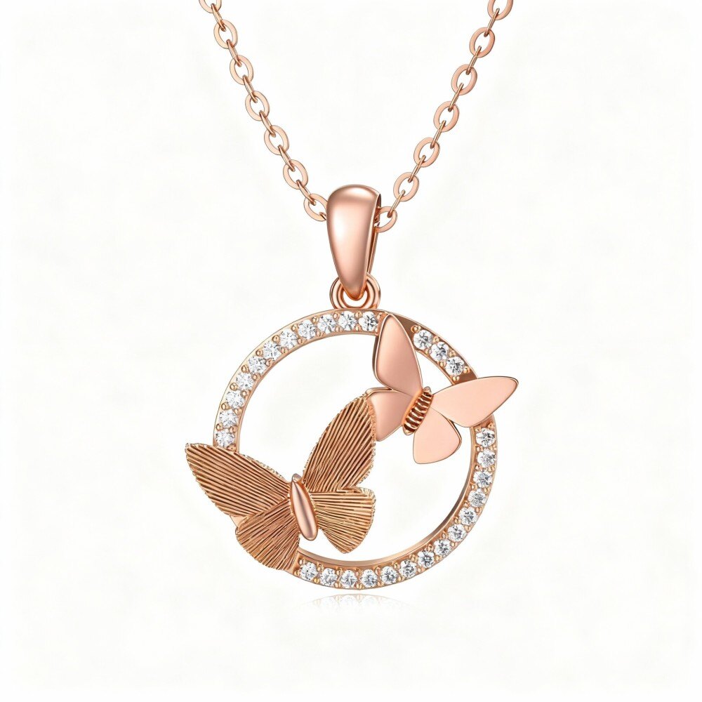 Elevate your elegance with our 18K Rose Gold Moissanite Butterfly Pendant Necklace, expertly crafted for timeless beauty and exceptional brilliance. Perfect for gifting.