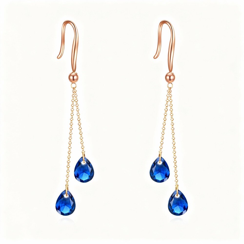 Discover our exquisite 18K Rose Gold Drop Earrings, showcasing a delicate pear-shaped design adorned with shimmering blue crystals, perfect for enhancing your elegance.