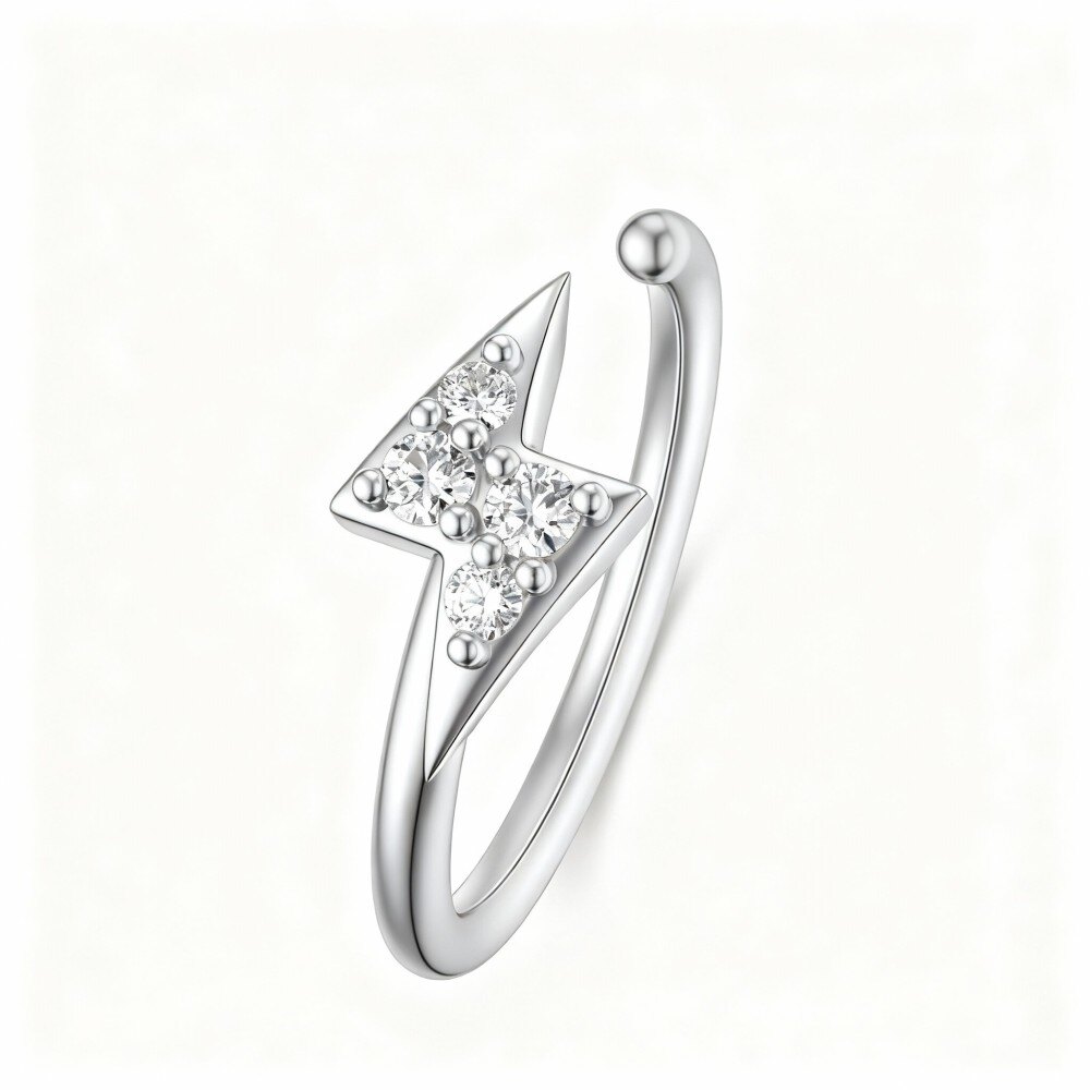 Illuminate your style with our breathtaking 18K White Gold lightning-themed nose ring, tailored for women who embrace unique and sophisticated jewelry. Crafted with exquisite attention to detail and featuring a brilliant moissanite stone, this piece combines contemporary flair with timeless elegance, making it ideal for any occasion.