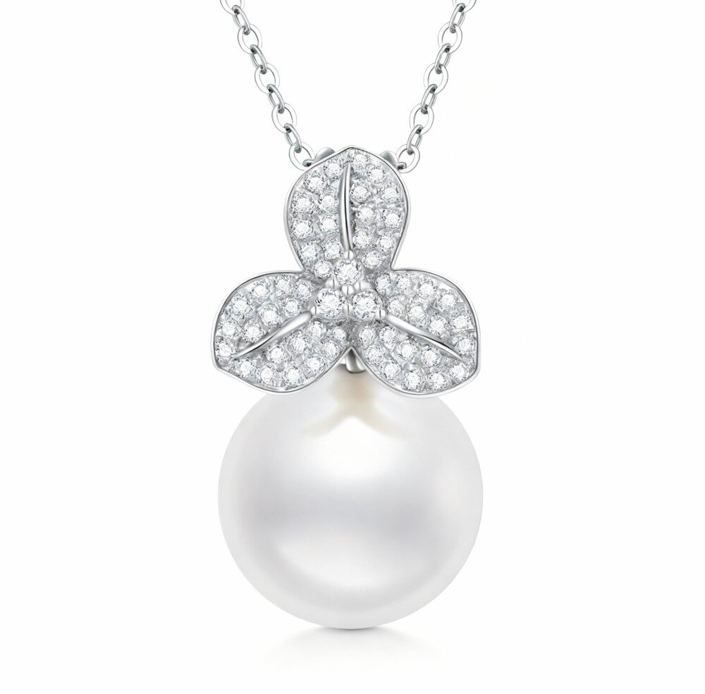 This exquisite 10K White Gold necklace is meticulously crafted to enhance your elegance with its luxurious design. The lustrous circular-shaped pearls gracefully drape around your neck, creating a timeless appeal. Each pearl is beautifully complemented by the brilliance of sparkling clear and white cubic zirconia stones, arranged in a unique shamrock pattern that adds a whimsical yet refined touch. Perfect for any occasion, this necklace not only showcases the exceptional craftsmanship of 10K White Gold but also embodies a perfect blend of classic sophistication and modern charm. Whether you are dressing up for a formal event or adding a touch of elegance to your everyday outfit, this necklace is the ideal accessory to elevate your jewelry collection.