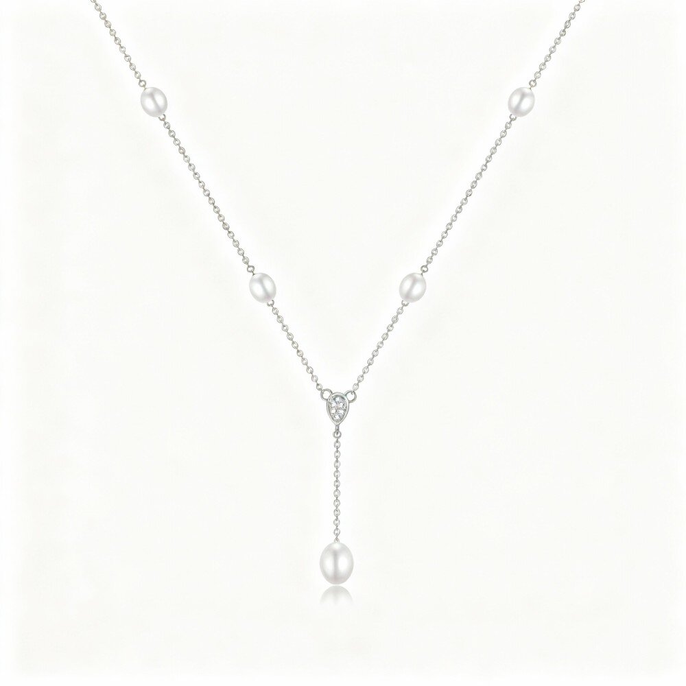 Discover timeless elegance with our 9K White Gold Y-Necklace, adorned with sparkling Cubic Zirconia and lustrous Pearls, designed exclusively for sophisticated women. Meticulously crafted in gleaming White Gold, this non-adjustable piece perfectly blends luxury and style, making it an ideal accessory for any occasion.