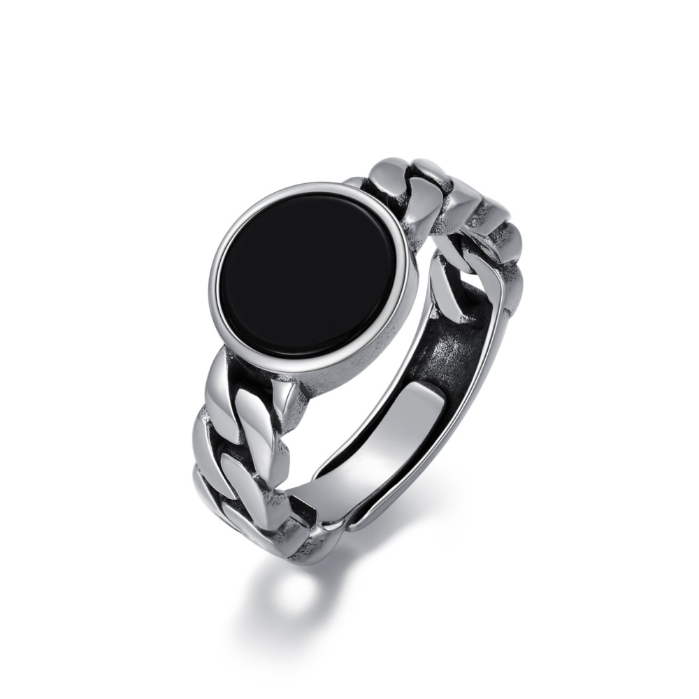 Crafted with meticulous attention to detail, this sterling silver open ring showcases a stunning, round black agate at its center, providing a versatile and stylish accessory suitable for any gender. Its retro silver finish and durable design make it perfect for both special occasions and everyday wear, ensuring you always stand out with a timeless charm.