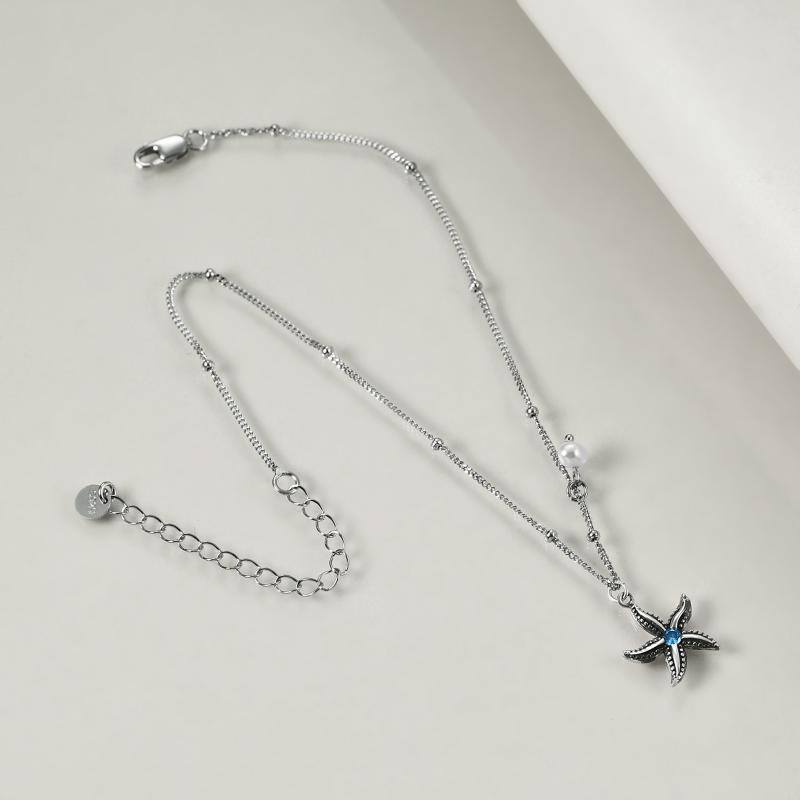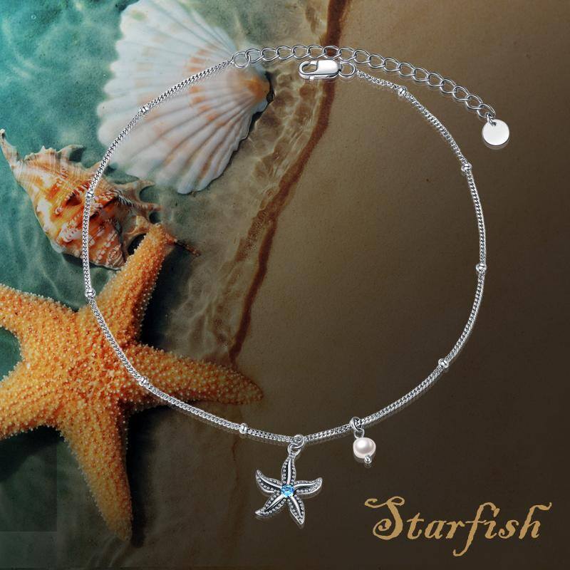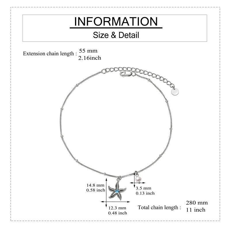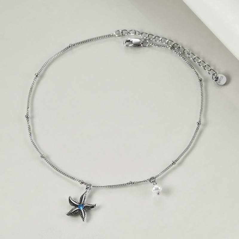 Elevate your summer style with our Sterling silver single layer charm anklet, featuring a delightful starfish design that's perfect for the beach-loving fashionista. Plated in elegant white gold, this anklet is crafted specifically for women who appreciate a blend of sophistication and whimsy in their jewelry collection.