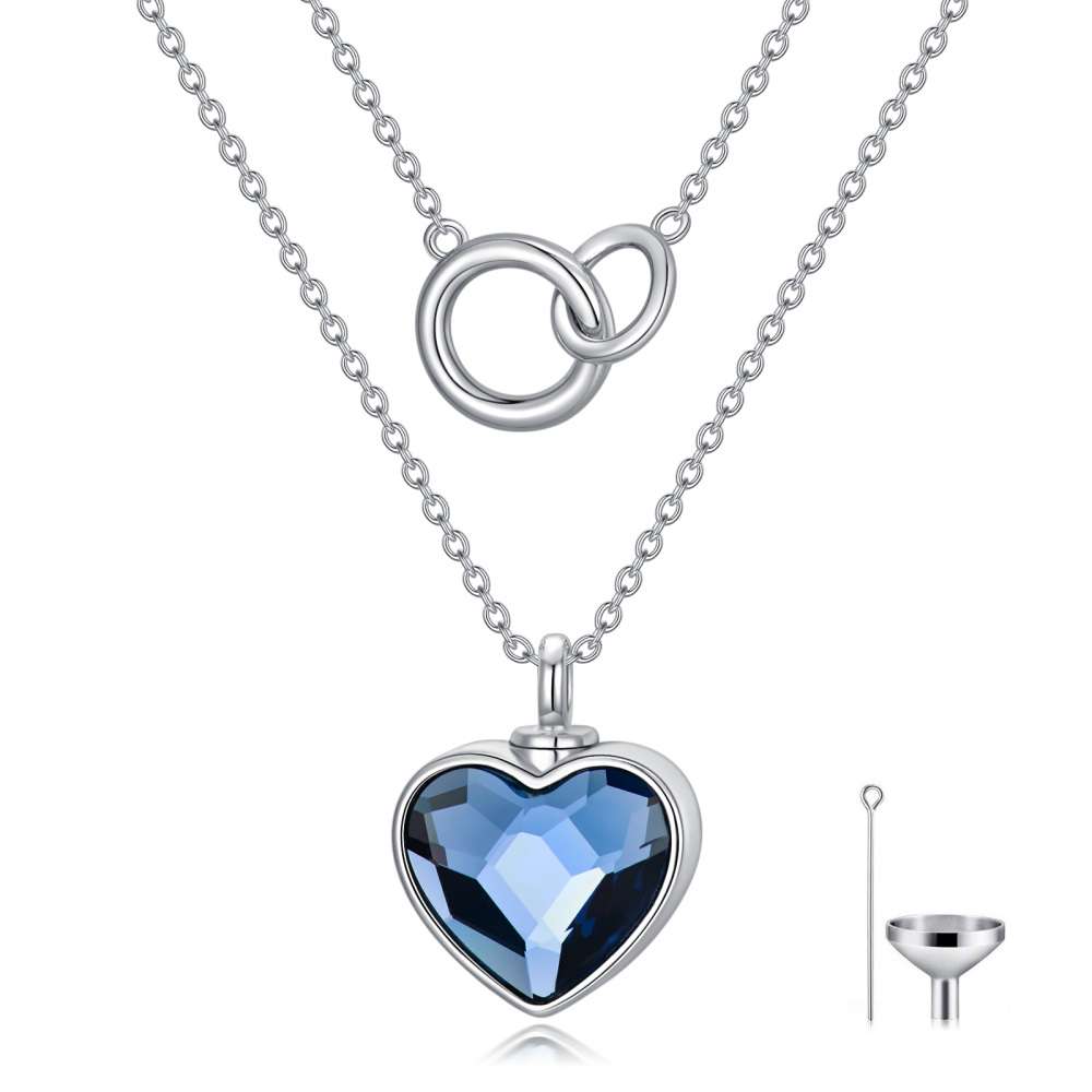 Crafted from premium sterling silver, this elegant urn necklace for ashes serves as a beautiful tribute to a loved one. The heart-shaped pendant features a stunning blue crystal and showcases a delicate infinite symbol, all finished with a luxurious white gold plating. Engraved with the touching phrase "Always In My Heart," this necklace provides comfort and keeps cherished memories close. An ideal blend of style and sentiment, it resonates deeply with women seeking a meaningful piece of jewelry.
