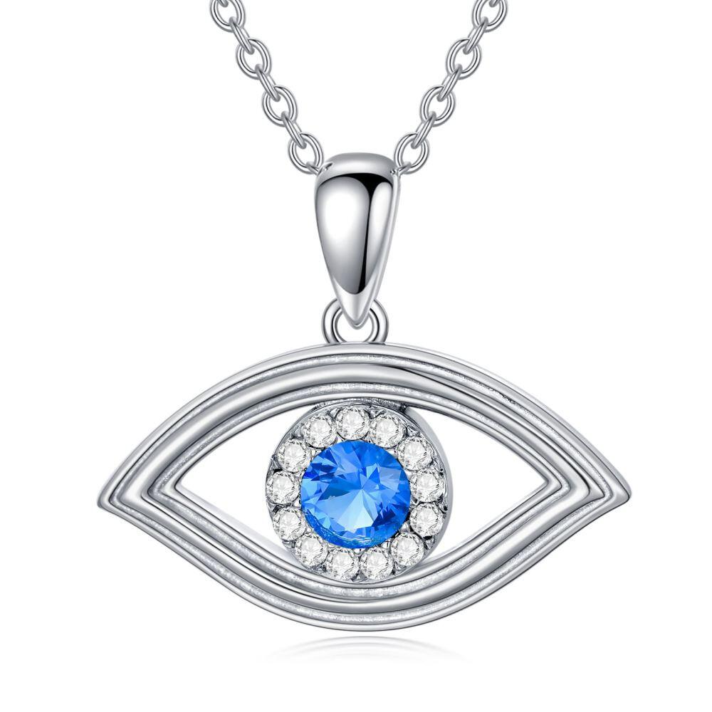 Our exquisite Pendant Necklace for women showcases a mesmerizing Devil's Eye design set in Sterling Silver, enhanced by the brilliance of a round Diamond and the elegance of blue hues, all meticulously white gold plated for a luxurious finish.Details: Crafted from premium sterling silver, this round pendant necklace features a captivating Devil's Eye motif adorned with a sparkling diamond and striking blue accents. The piece is expertly plated in white gold, ensuring both its elegant appeal and durability, making it a perfect addition to any jewelry collection.