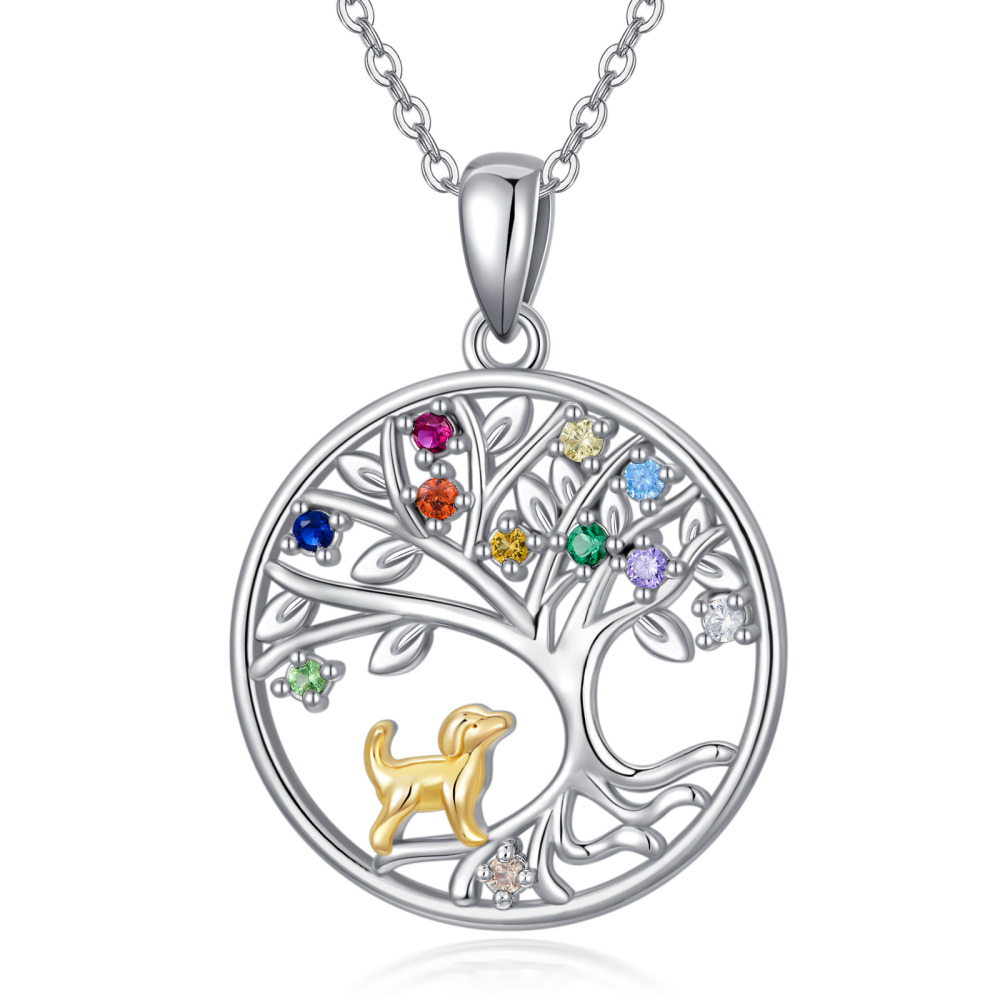 /sterling-silver-two-tone-circular-shaped-cubic-zirconia-dog-tree-of-life-pendant-necklace-p71281914
