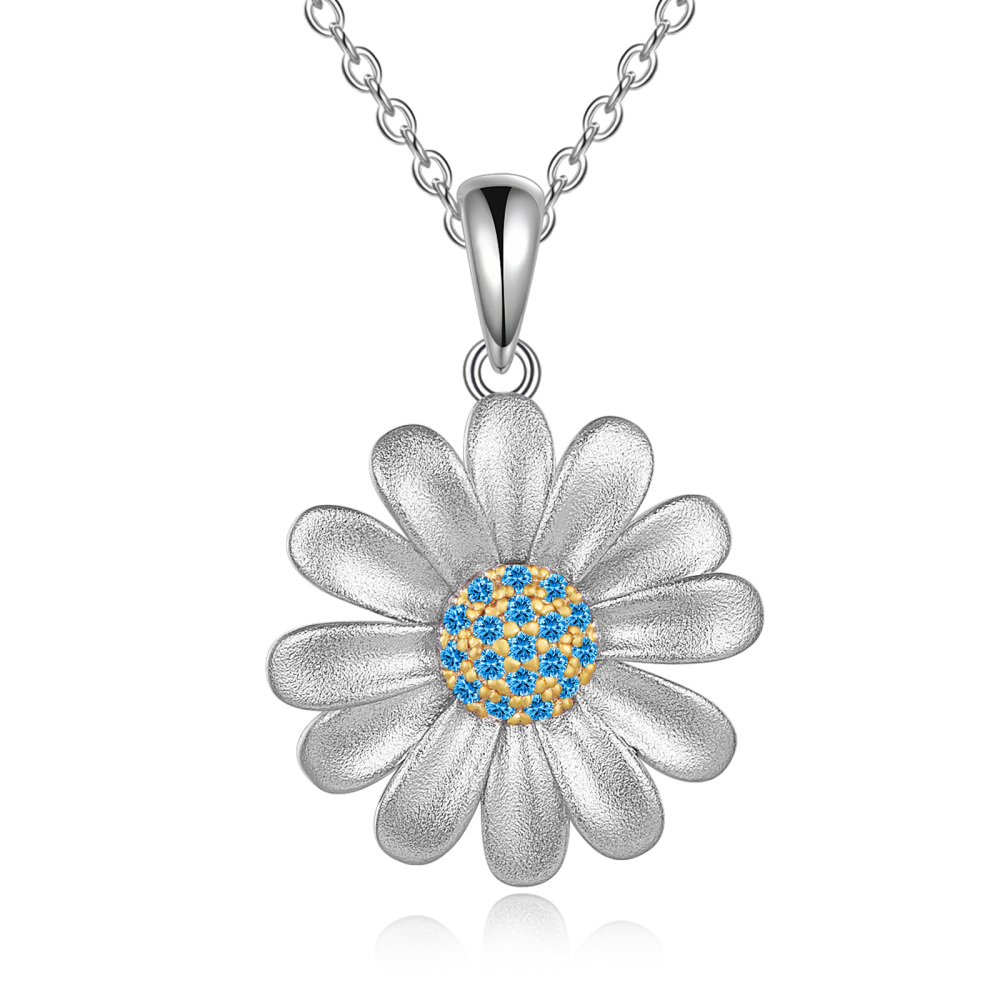 Dazzle in our exquisite Sterling Silver Pendant Necklace, featuring a vibrant Blue Cubic Zirconia daisy design, available in both White Gold and Yellow Gold options, perfect for women who appreciate sophisticated elegance and timeless beauty.