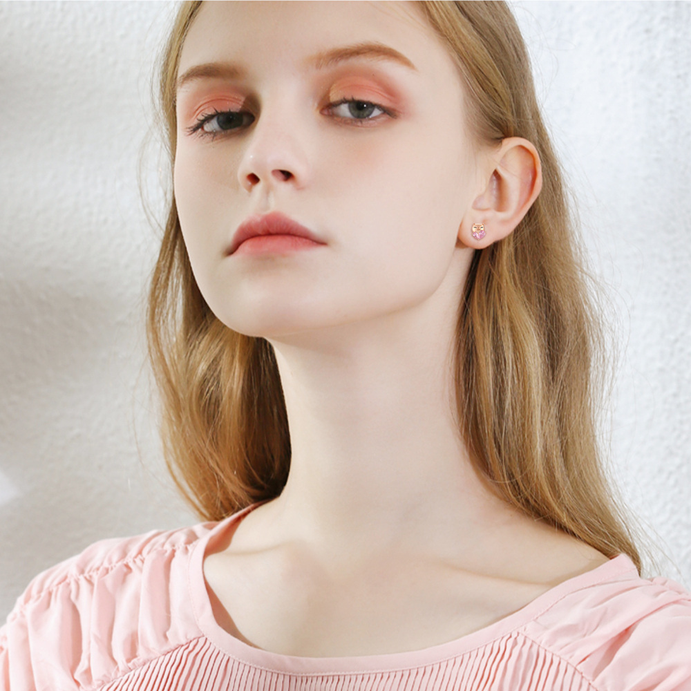 Our charming heart-shaped Sterling silver Stud earrings are meticulously plated in Rose gold, featuring sparkling pink crystals and an adorable pig design, making them the perfect blend of whimsical elegance and sophisticated style for women.